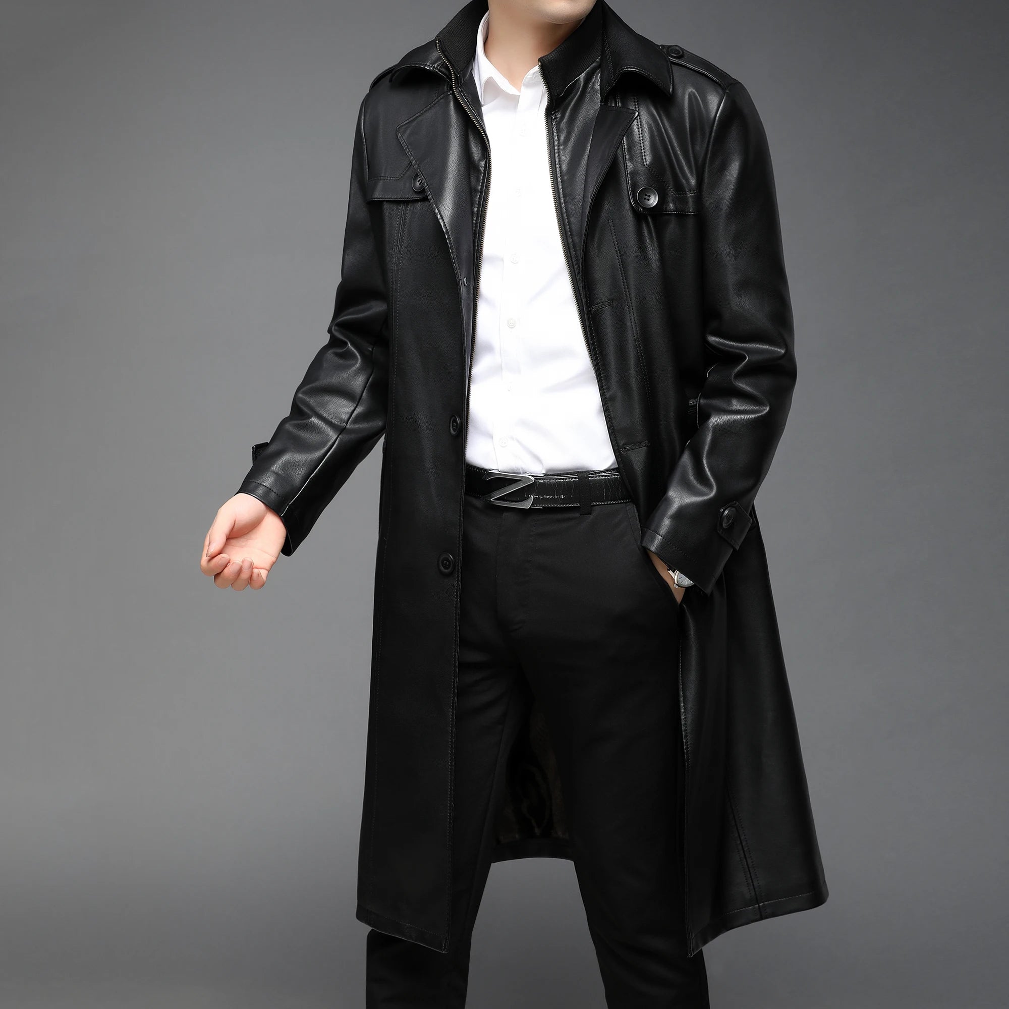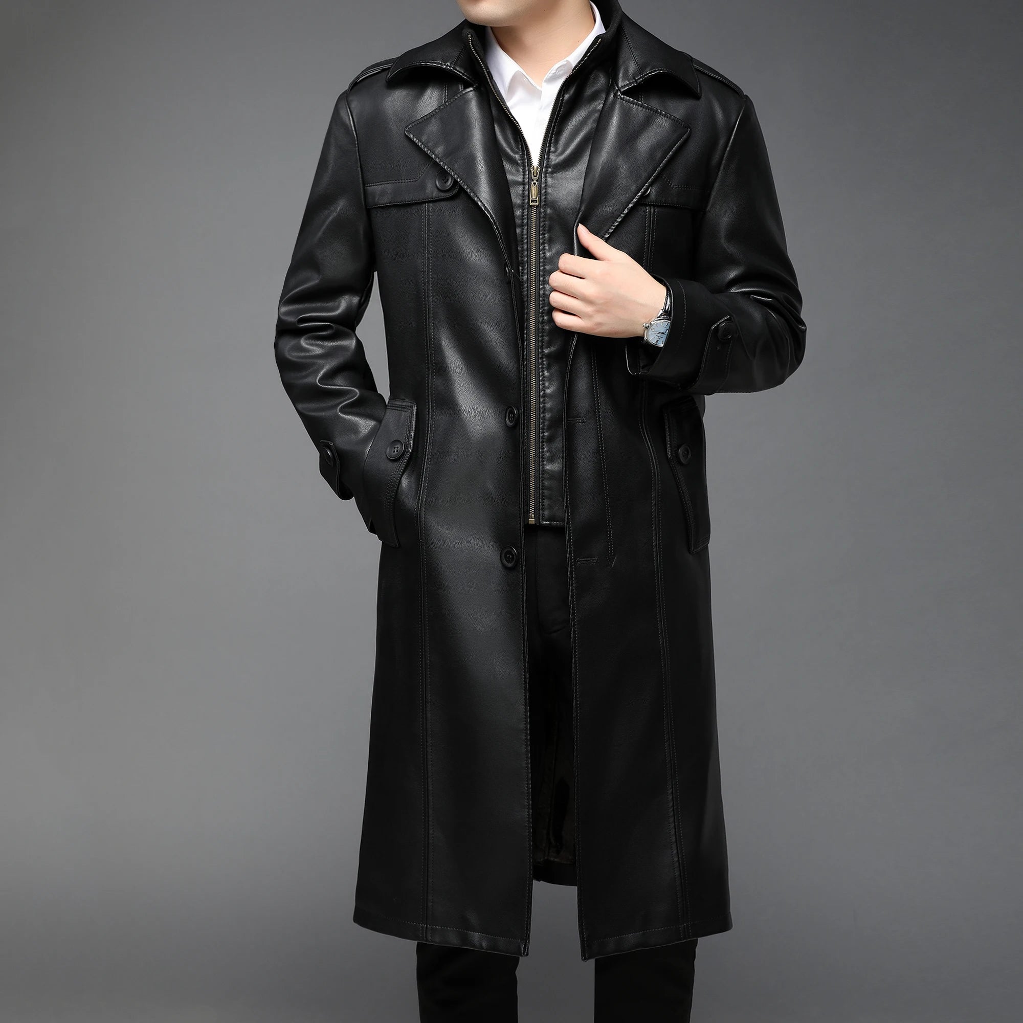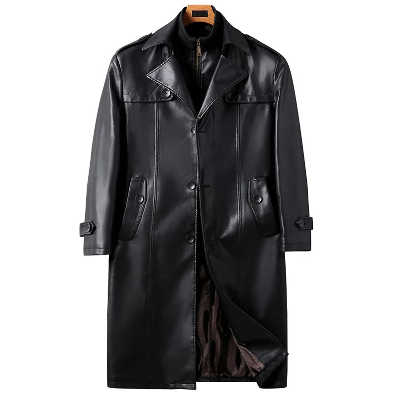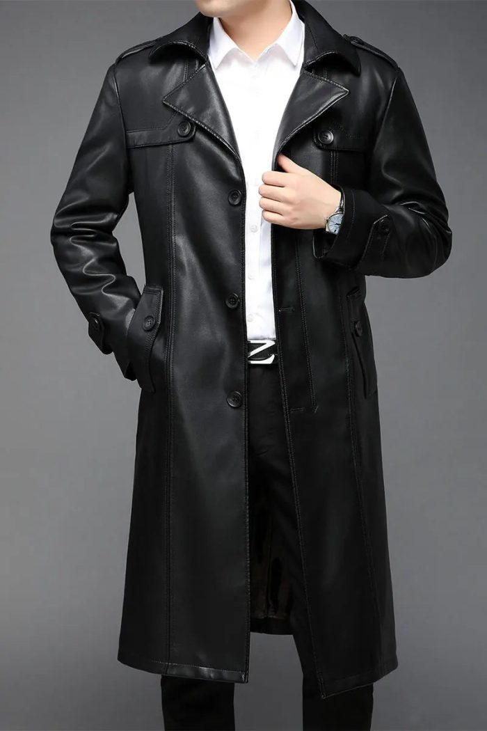Stay warm and stylish with our PU leather long coat. Crafted from faux leather, this long coat offers a touch of luxury without breaking the bank. Get the look and feel of real leather while staying on budget.